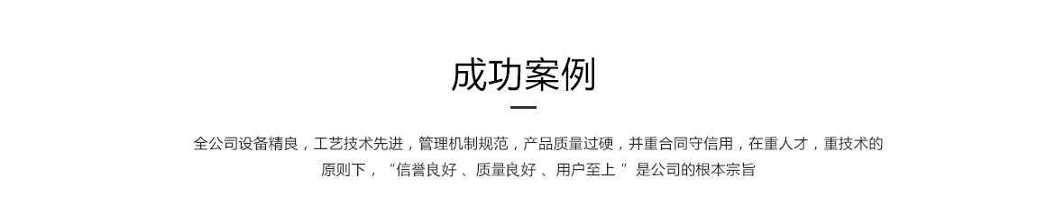 全公司設備精良,管理機制規(guī)范,產品質量過硬,并重合同守信用,在重人才,重技術的原則下,“信譽好 、質量標準 、用戶至上 ”是公司的根本宗旨。公司上下,團結一致,把不斷完善并持續(xù)改進質量管理體系作為公司永恒的追求。